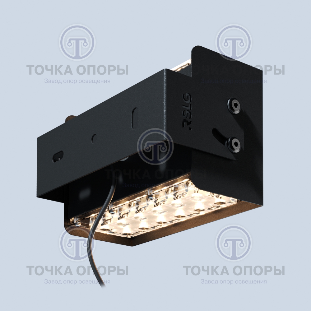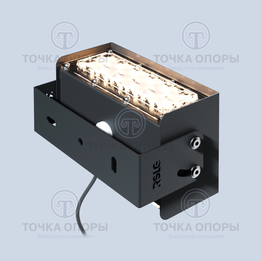 Архитектурные светильники F1-2 устанавливаются на фасады зданий и потолки. Крепление осуществляется с помощью метизов. Узел наклона кронштейна для архитектурного светильника F1-2 регулируется.