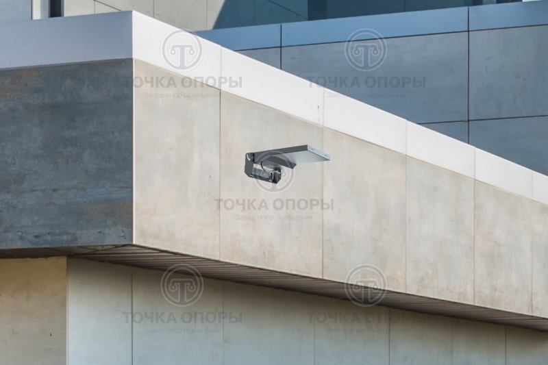 Архитектурные светильники P5-2 устанавливаются на фасады зданий и потолки. Крепление осуществляется с помощью метизов. Узел наклона для архитектурного светильника P5-2 регулируется, скоба позволяет перемещаться под углом 90°.