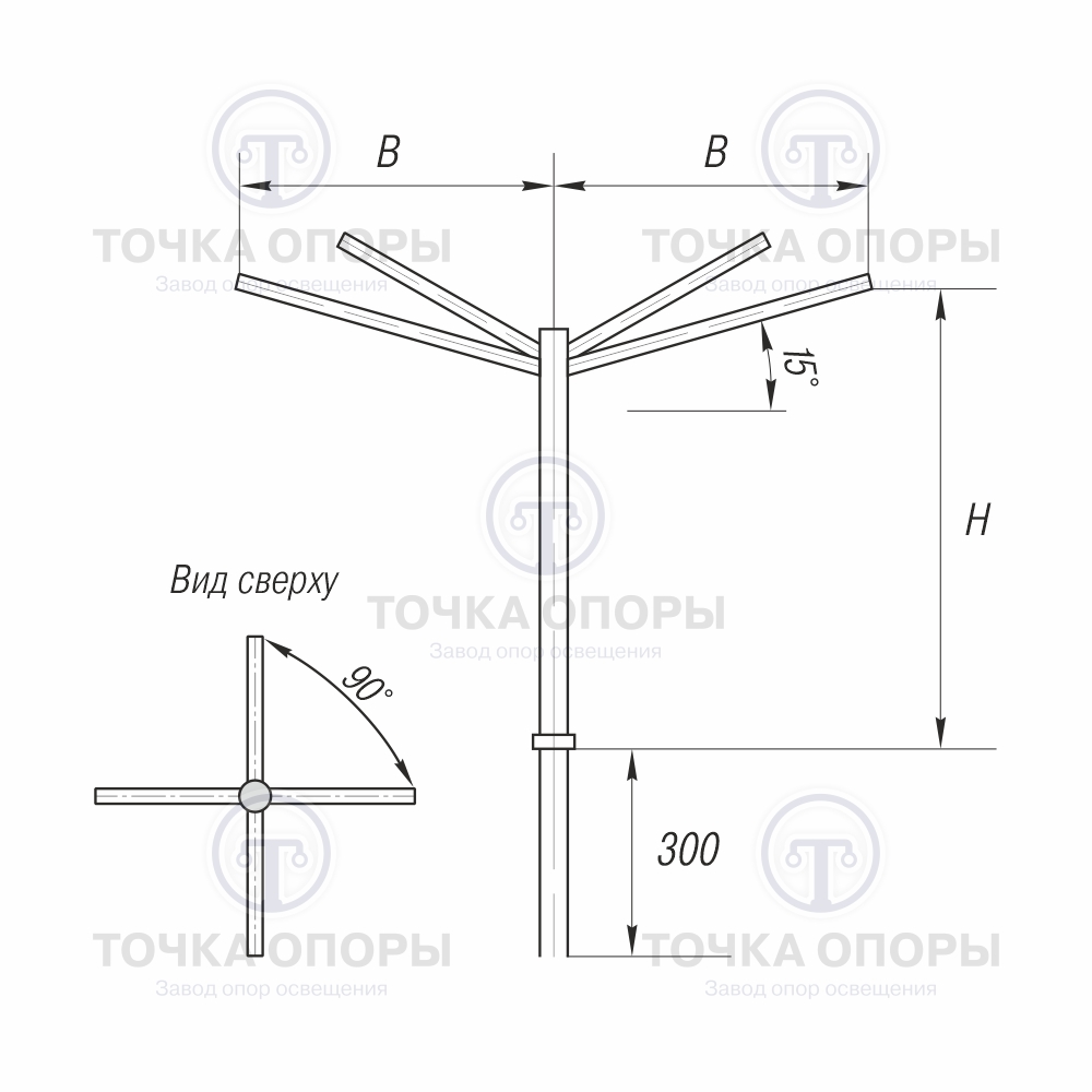 Завод опор освещения «Точка опоры» изготавливает четырехрожковые консольные кронштейны из стального проката. Собственное производство позволяет выполнять изделия надлежащего качества и в кратчайшие сроки.