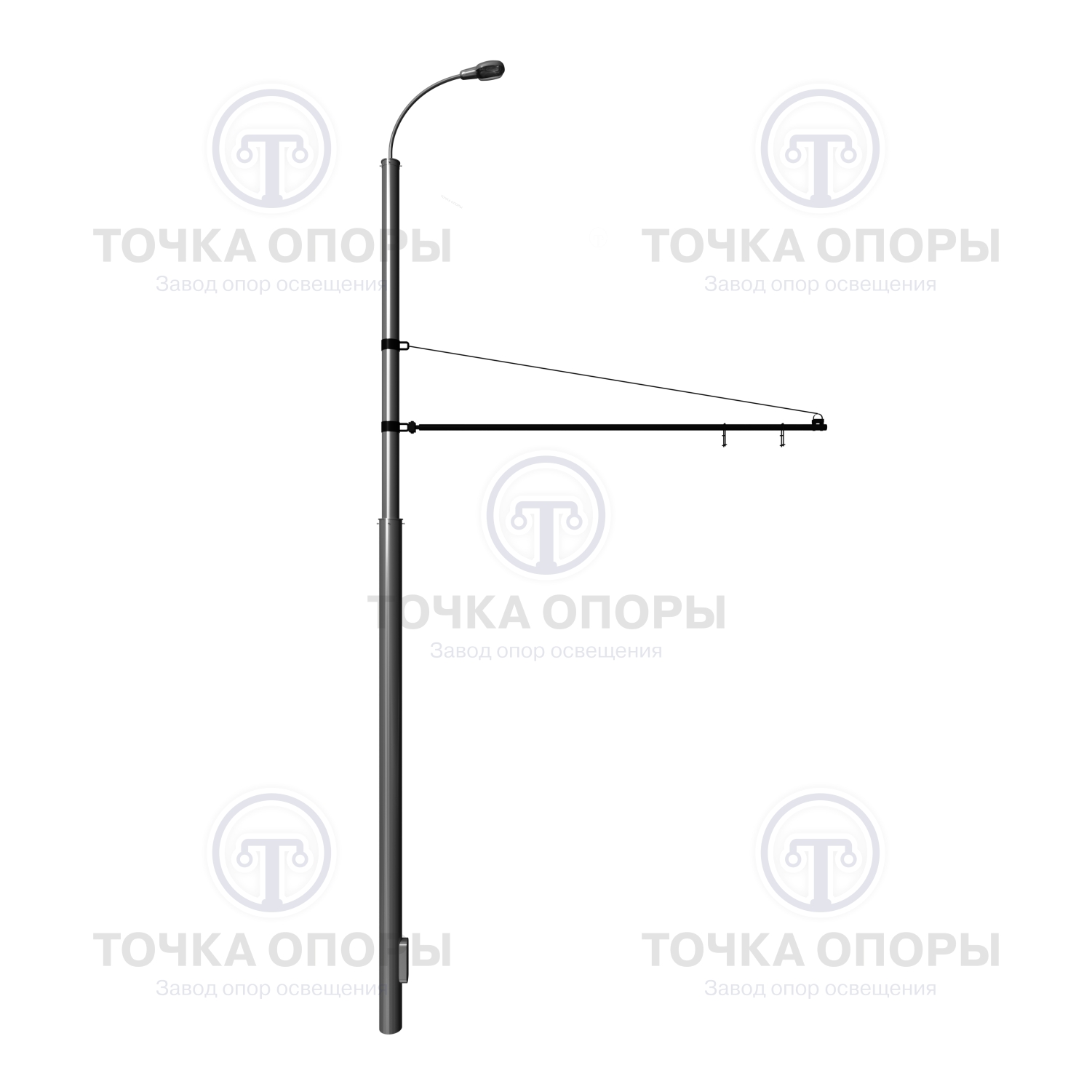 В комплектацию опор ТП входят кронштейны, используемые для установки осветительного оборудования. Кронштейны и соответствующие крепежные элементы выполняются из нержавеющей стали или проходят горячее цинкование вместе со стволом конструкции.