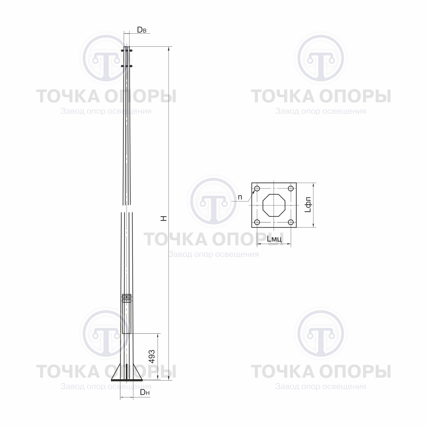 Возможно изготовление опор освещения по индивидуальным характеристикам и чертежам заказчика.