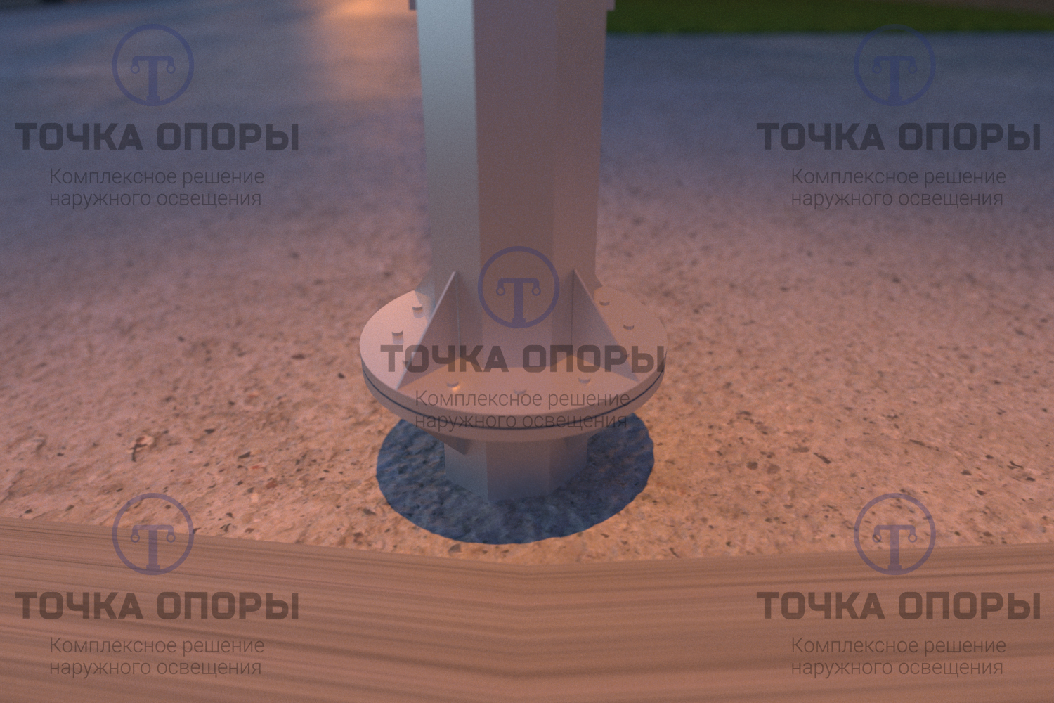 Кабели прокладываются исключительно под землей, что обеспечивает безопасность и эстетичность. Обслуживание опоры осуществляется через ревизионный лючок, расположенный в нижней части конструкции.