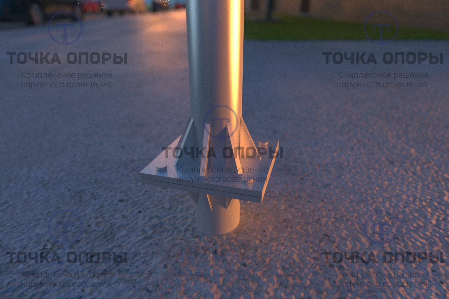 Монтаж фланцевой несиловой опоры ОНО происходит на закладную деталь фундамента трубчатого типа, которая бетонируется в грунт. Опора ОНО крепится к закладной детали на уровне земли, при помощи метизов. Установка опоры освещения на закладные детали позволяет аккуратно демонтировать опору для переноса или замены.
